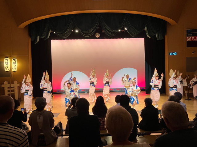 眉山山頂から戻り、阿波おどりが年間を通して楽しめる阿波おどりホールで、専属連の阿波おどり「昼のおどり」を堪能、途中、踊りを教わるコーナーがあり、舞台の専属連と一つになっての踊りを薦められ、やはり、踊らにゃそんそん、楽しいひと時を過しました。