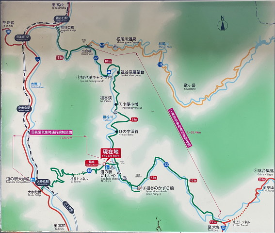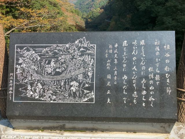 翌日、高知自動車道を走り、大歩危橋を渡り、大歩危トンネルを通過、道の駅にしいやで休憩。かずら橋夢舞台前にある駐車場に車を停めて、坂を下ること徒歩3分、