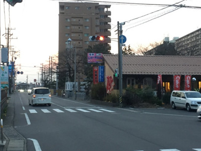 18:02 名鉄各務原線六軒駅そばの信号で本日は打ち止め信号手前のダイドービバレッジの赤い看板が目印この信号を右折し約1キロメートル先にあるルートイン各務ヶ原が本日の宿 18:20チェックイン