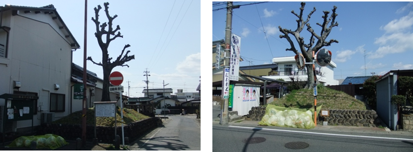細畑一里塚(江戸方より105番目)左右現存街中で左右そろっているのはめずらしい