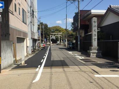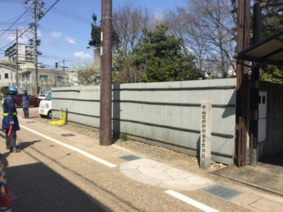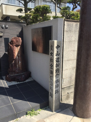 11:09 通りを渡って右側1本目の電柱の向こう側に加納宿本陣跡の標柱