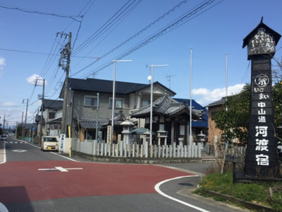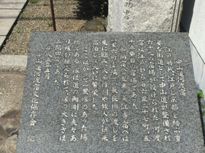 一里塚跡碑の前の河渡宿説明碑