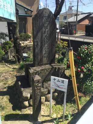 13:27 河渡一里塚(江戸方より107番目)跡の石碑
