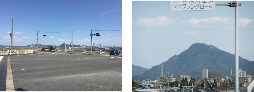 観音堂の前をそのまま行くと長良川の堤防沿いの道になり、その少し先を右折するが、そこから眺めた街並み
