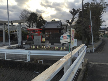 池尻一里塚(江戸方より110番目)跡の標柱白山神社のすぐ先にある